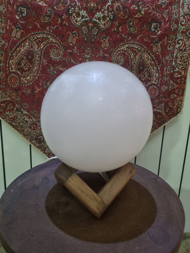 گوی سنگ نمک آباژوری با پایه چوبی لامپ و سبم سایز۱۸